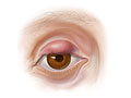 - As the stye grows, the eyelid becomes swollen and painful, and the eye may water.