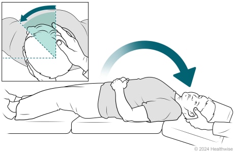 The doctor will hold your head in position and help you roll your body in the same direction that your head is facing. Your face will look toward the floor. You will be lying on the same side that causes the worst vertigo. (For example, if you are looking to your right, you will roll onto your right side.) The doctor will hold you in this position for at least another 20 seconds.