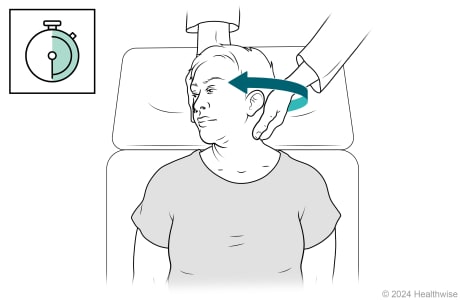 Next, the doctor turns your head halfway (45 degrees) toward the side that causes the least vertigo. The doctor will hold your head in this position.