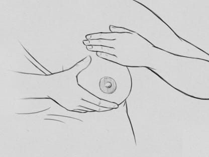 - U hold: Your thumb is on the outer side of your breast. Your fingers are on the inner side.