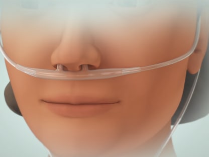 To breathe the oxygen, most people use a nasal cannula (say "KAN-yuh-luh"). This is a thin, plastic tube with two prongs that fit just inside your nose. People who need a lot of oxygen may need to use a mask that fits over the nose and mouth.