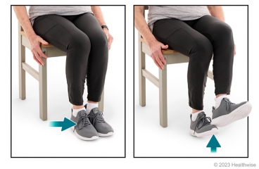 - Sit in a chair with your feet flat on the floor. (You can also do this exercise lying on your back with your affected leg propped up on a pillow).