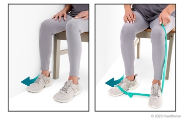 - Then place the heel of your other foot on top of the affected foot. Push up with your affected foot against the heel of your other foot. Your muscles will tighten, but your affected foot should not move up.