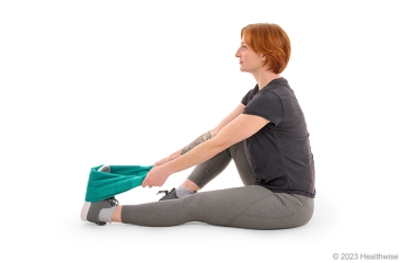 - Sit on the floor with your affected leg straight and resting on the floor.