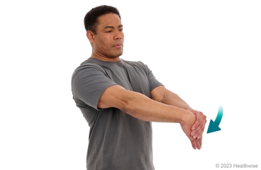 - With your other hand, gently bend your wrist farther until you feel a mild to moderate stretch in your forearm.