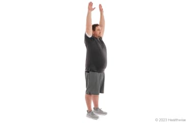 - Hold for 15 to 30 seconds, then lower your arms to your sides.