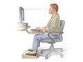 Your child should be able to see the monitor without looking up. Your child's shoulders should be relaxed when typing. You may want to have your child sit on a thick book, a firm pillow, or a booster seat.