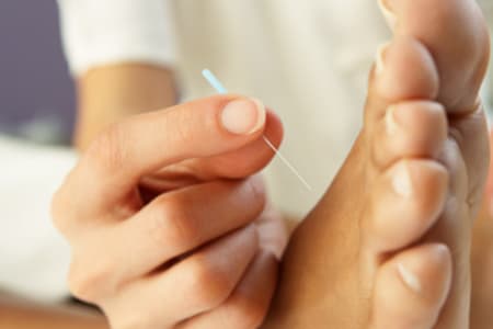 Acupuncture is done by putting very thin needles into your skin at certain points on your body. This is done to influence the energy flow. Sometimes heat, pressure, or mild electrical current is used along with needles.